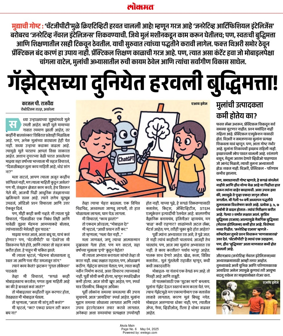 In this article, international robotic trainer Kajal Rajvaidya argues for blending traditional learning with modern AI tools to retain what she terms 'Generative Natural Intelligence' — instincts, creativity and problem-solving that risk being eroded by over-reliance on generative AI. The piece outlines steps educators can take to maintain curiosity and critical thinking alongside technology.